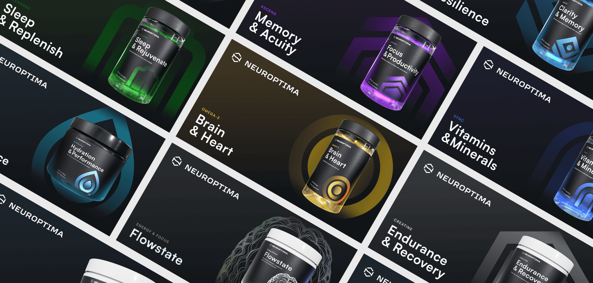 Legacy product labels looked generic and under-emphasized Neuroptima’s scientific rigor. Lack of 3D or lifestyle imagery made it hard to convey product benefits.